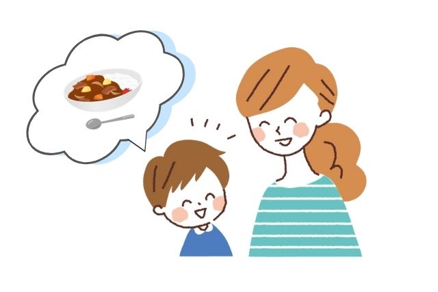 ママが女優になり献立表を見ながら、「えーー!明日のメニュー最高じゃん♪○○くんの好きな、カレーライスだよ!」など、子どもが「明日の給食食べてみたい!楽しみ♪」と思えるような言葉かけをしてみましょう。